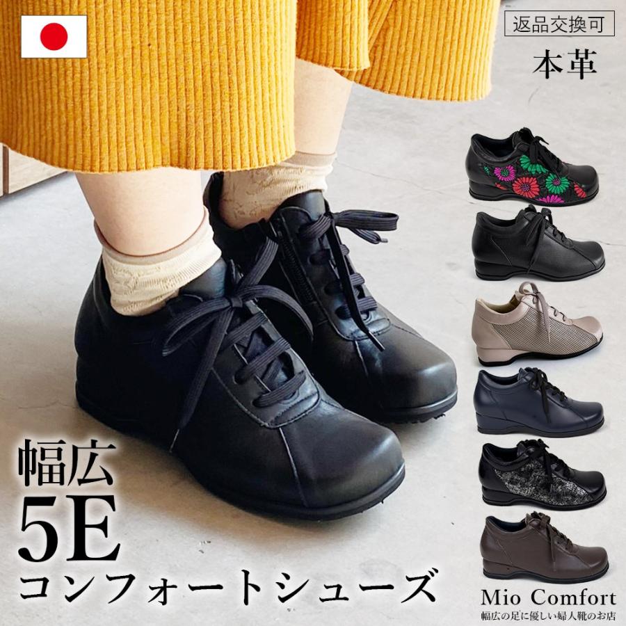 売り切れ必至 日本製 本革 靴 レディース 5e コンフォートシューズ 黒 カジュアルシューズ 軽量 レザーシューズ 幅広 コンフォートスニーカー メッシュ 通気性 s Se